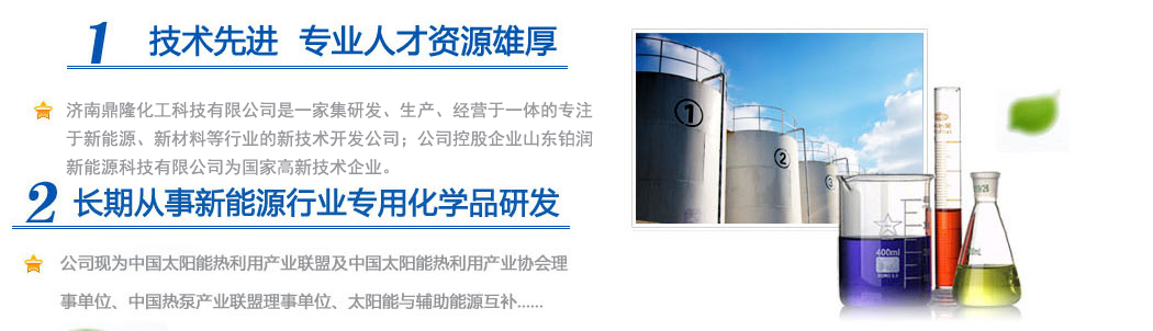 • 山東省地方標(biāo)準(zhǔn) DB37/T 2953-2 • 淺析太陽(yáng)能專(zhuān)用導(dǎo)熱介質(zhì)的性能與優(yōu)劣衡量 • 太陽(yáng)能換熱系統(tǒng)的腐蝕及預(yù)防 • 不同類(lèi)型導(dǎo)熱介質(zhì)的對(duì)比 • 祝賀網(wǎng)站全新改版!歡迎您的訪問(wèn)!